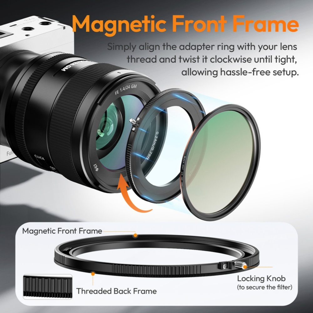 The Ulanzi MF01’s magnetic attachment system allows instant mounting and removal, making it simple to swap filters on the go without interrupting your creative workflow.