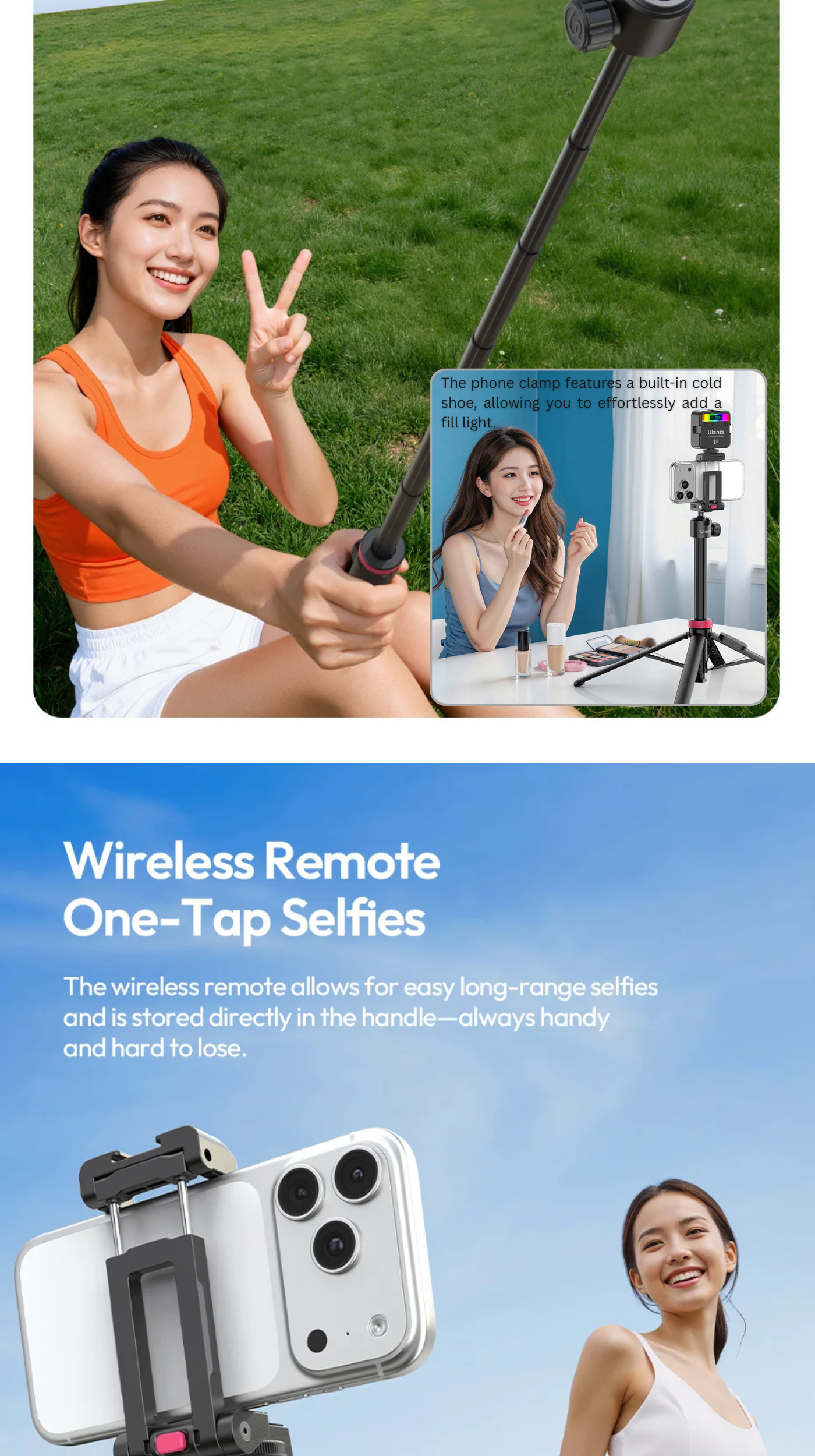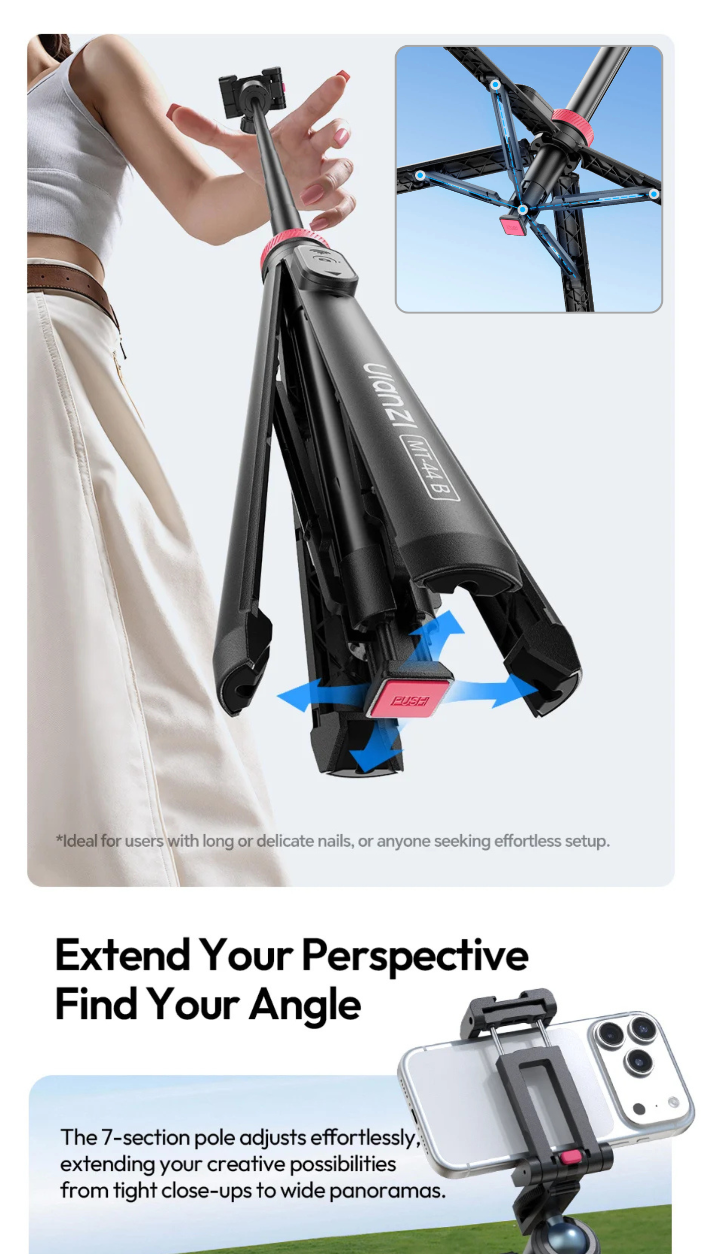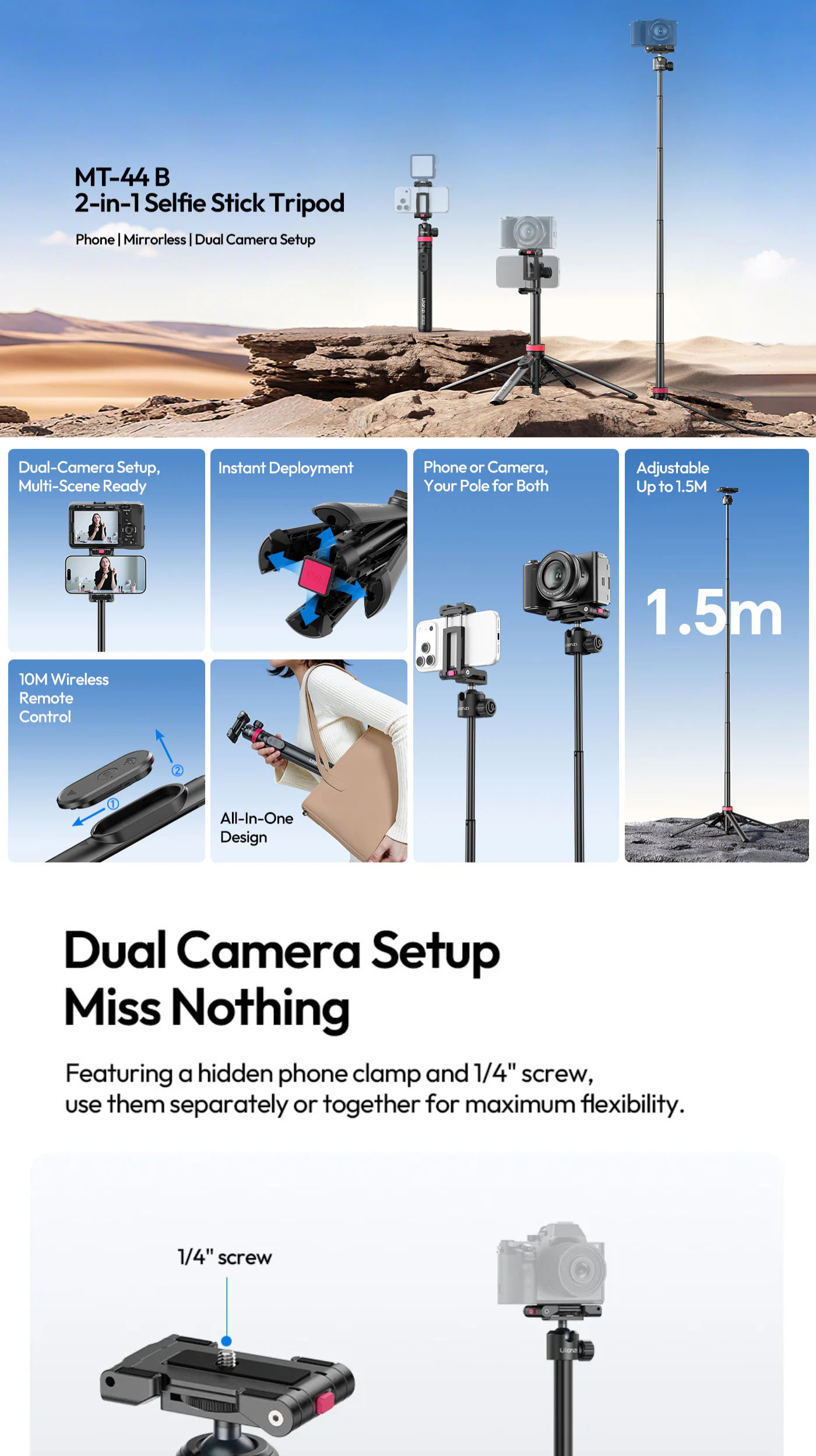 Ulanzi MT-44B 2-in-1 Selfie Stick Quadpod Monopod Tripod | S056