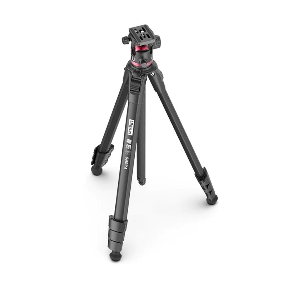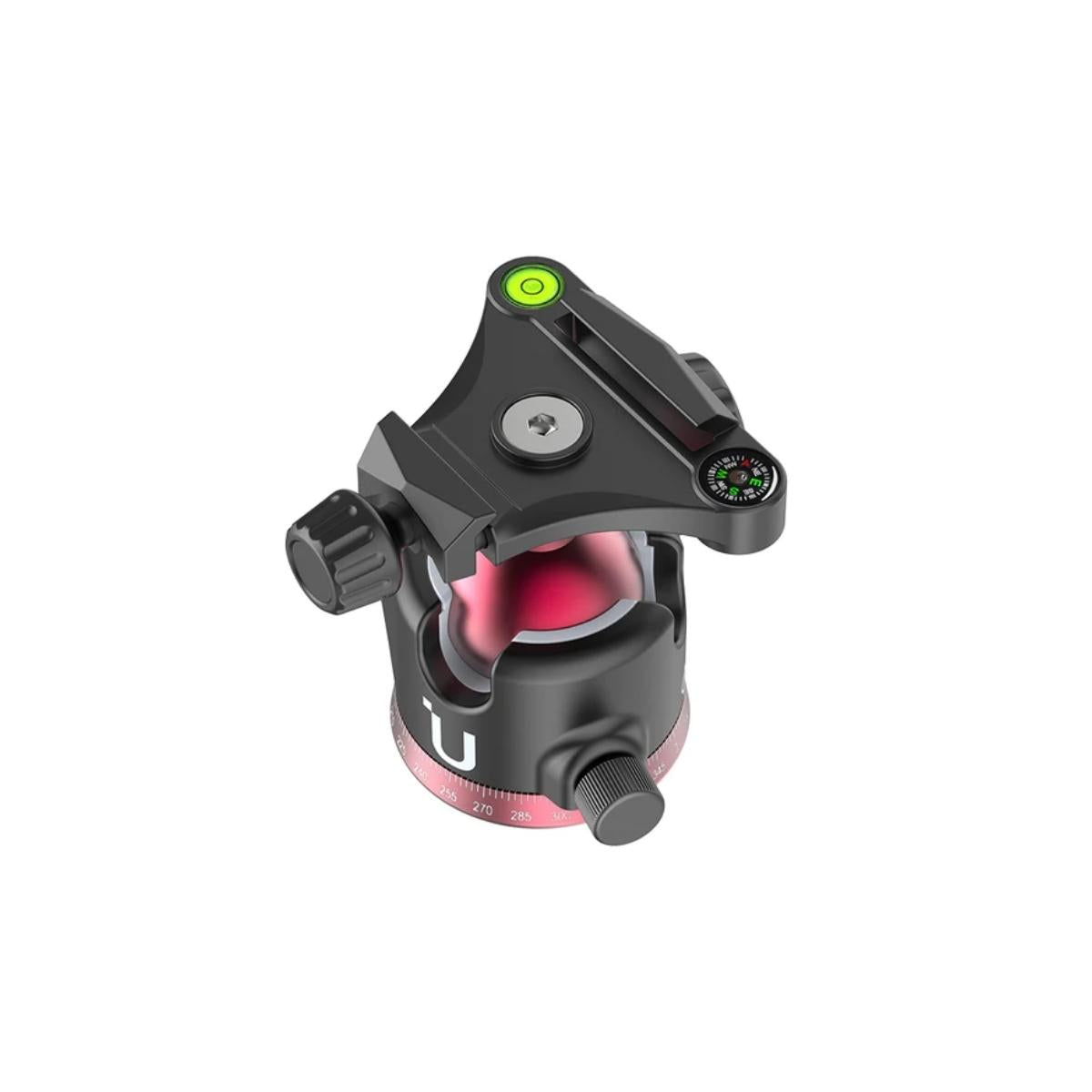 The Ulanzi Ombra Tripod comes with a built-in fluid pan and tilt head. The ball head has independent locks for pan and tilt. You can use the knob to pan in a continuous range from zero to the maximum level. While the tilt can only move in a range of 180 degrees. The head is removable. You can attach any ball head with 3/8'' threaded hole on the tripod.