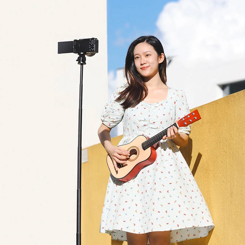• Capture Moments with Ease: 10 meters long distance remote control range, 360° Rotation of the phone clamp, extendable up to 1.6m, 27mm aluminum alloy center pole.