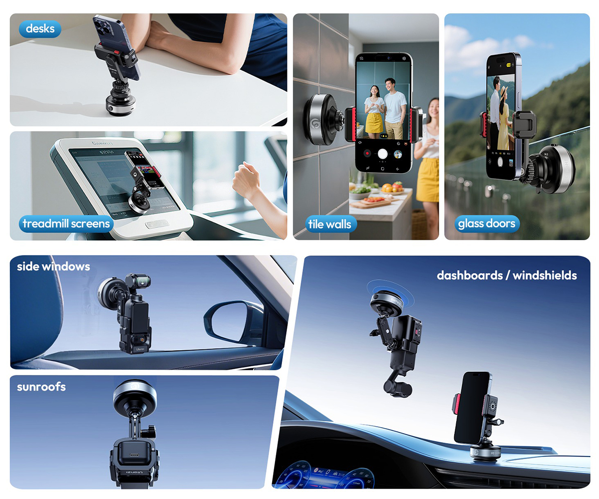 The ULANZI SK-23 (Model M085) Electric Suction Base is a robust mounting solution that lets you quickly secure your camera, action cam, or smartphone to smooth surfaces—like dashboards, windshields, glass, or tiles—with minimal effort. Its motorized suction cup provides reliable hold even during motion, auto-adjusts for air leaks, and is designed to handle bumpy or bright-condition environments. Perfect for car-rig shots, POV footage, travel vlogging, or any scenario where you need a stable mount without clamps or adhesives.