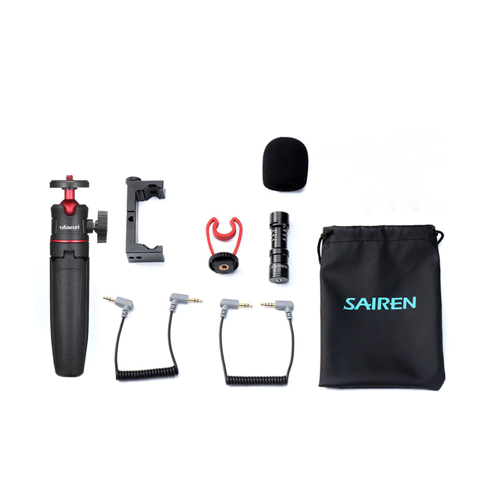 Ulanzi Smartphone Vlog Kit 2 - Sairen VM-Q1 Mic + Ulanzi MT-08 Mini Tripod + Ulanzi ST-07 Phone Holder for Vlogging Livestream YouTube