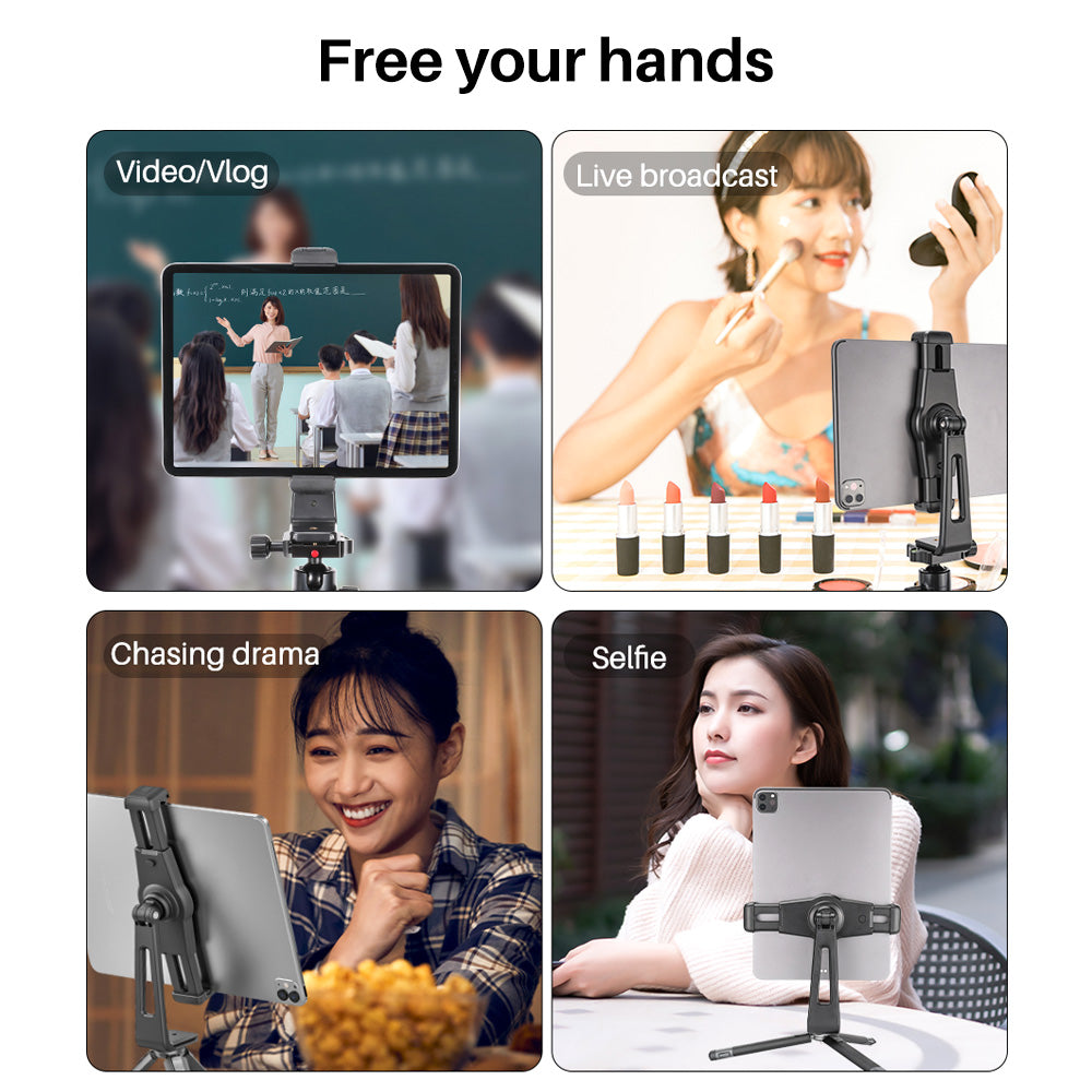 Ulanzi ST-20 20 Plastic Tablet Clamp Holder 22cm Stretchable Range with Horizontal / Vertical Shooting 360 Rotation 2 Cold Shoes Quick Plate