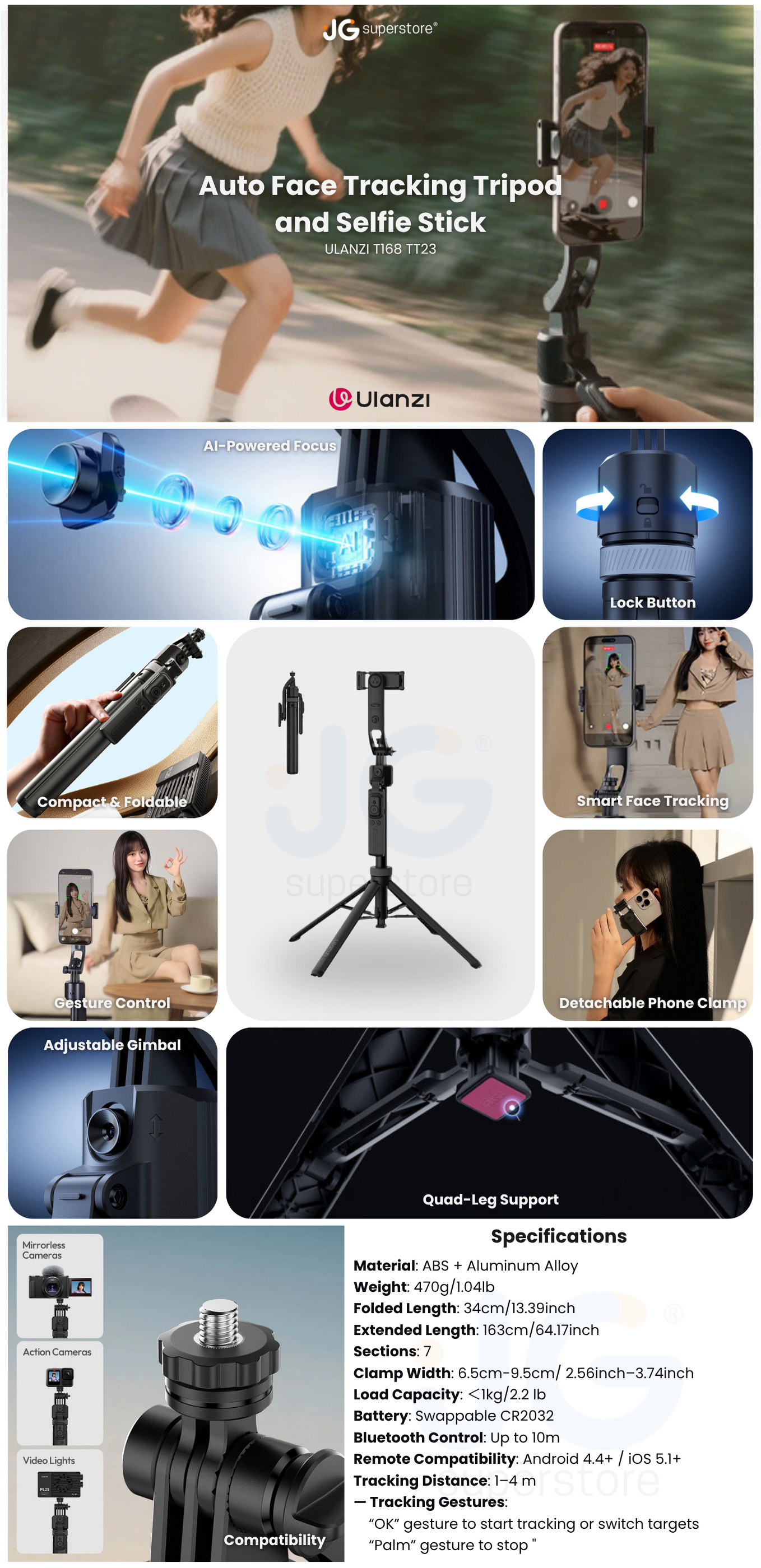 The TT23 Auto Face Tracking Tripod and Selfie Stick from Ulanzi can escalate the quality of video content from content creators and vloggers by replacing shaky handheld tracking with smooth, elegant automated tracking. With features such as 360° movement tracking, AI-based face recognition, and gesture controls, this tripod aims to address the common challenges of shooting yourself and creating professional-looking results. This lightweight support incorporates new-generation technology that offers minimal sensitivity delay to ensure that the tripod locks onto the subject quickly and accurately, without visible shake or disruption.