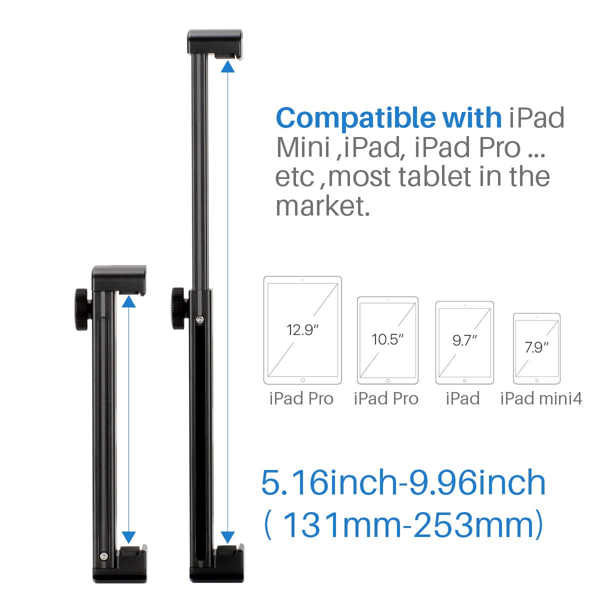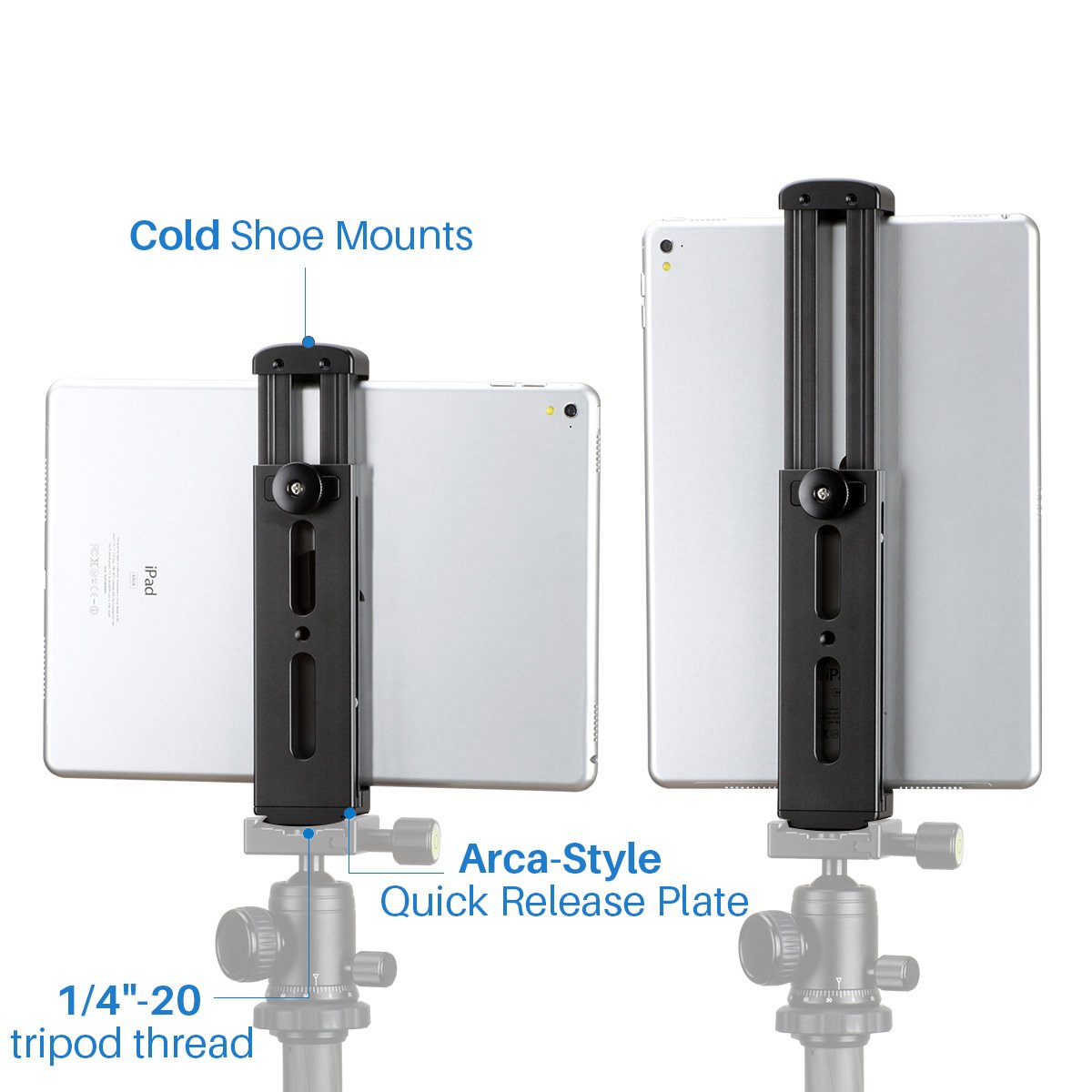 - Universal COMPATIBILITY-----The Tablet Tripod Mount Fits Most Tablet Like (for iPad Mini/ iPad 4/iPad pro 9.7/iPad pro 10.5/iPad pro 12.9 and Surface Pro)