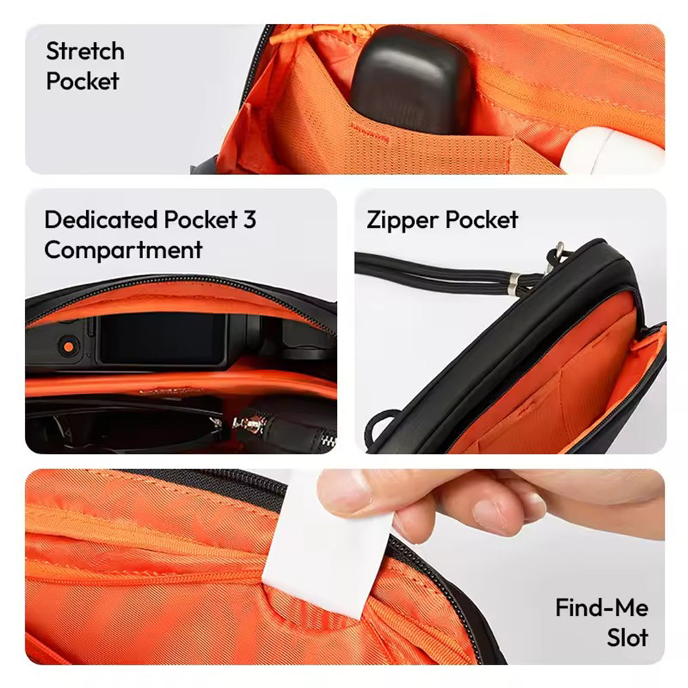Ulanzi YY08 TechLite 2L Crossbody Shoulder Sling Bag with Two-Way Zipper, Detachable Strap, Spacious Compartments and Multi-Stretch Pockets for DJI Osmo Pocket 3, Digital Cameras, Smartphones, Batteries, Mini Tripod & Accessories | Black