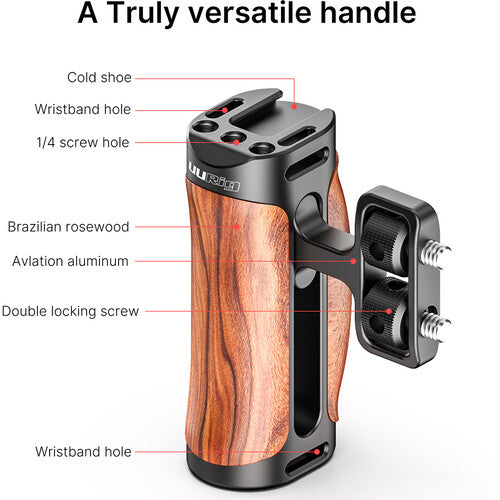 [CLEARANCE] UURig by Ulanzi R075 Universal Mini Wood Side Handle for Sony A6400 A6300 A6600 A6500 A73 with 1/4"Screw Cold Shoe