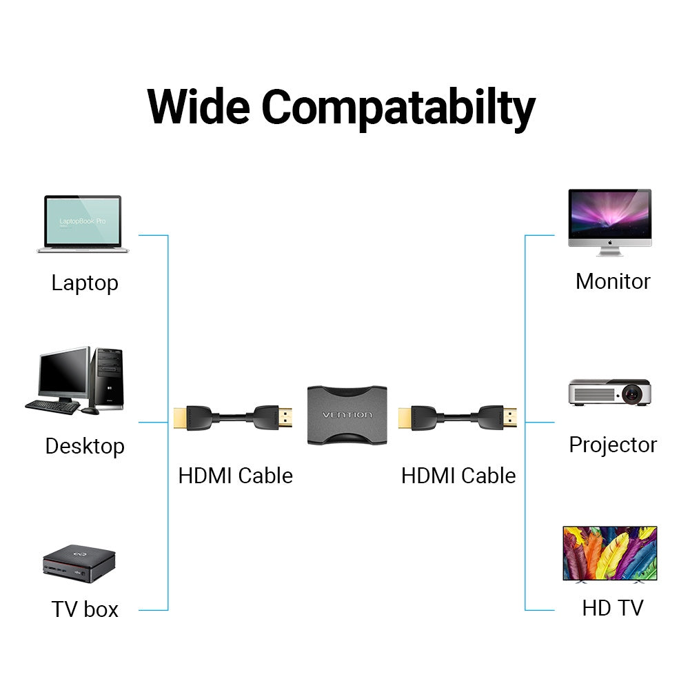 Users can conveniently join two short HDMI cables, creating a more extended HDMI connection with high versatility. This cost-effective way of joining two cables together does not affect the signal quality or integrity.