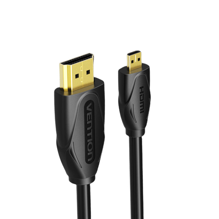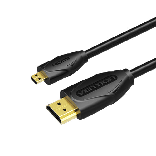 Vention Micro HDMI to HDMI Cable 4K HDR 60Hz Gold-Plated Cord with 18Gbps High Speed Ethernet for Monitor, Projector, TV, Camera (Black) (1.5M) | VAA-D03-B150