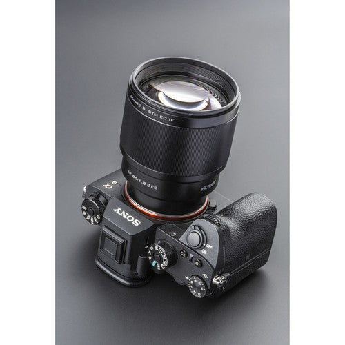 - Portrait-length prime is designed for full-frame Sony E-mount mirrorless cameras, however can also be used with APS-C models where it provides a 127.5mm equivalent focal length.