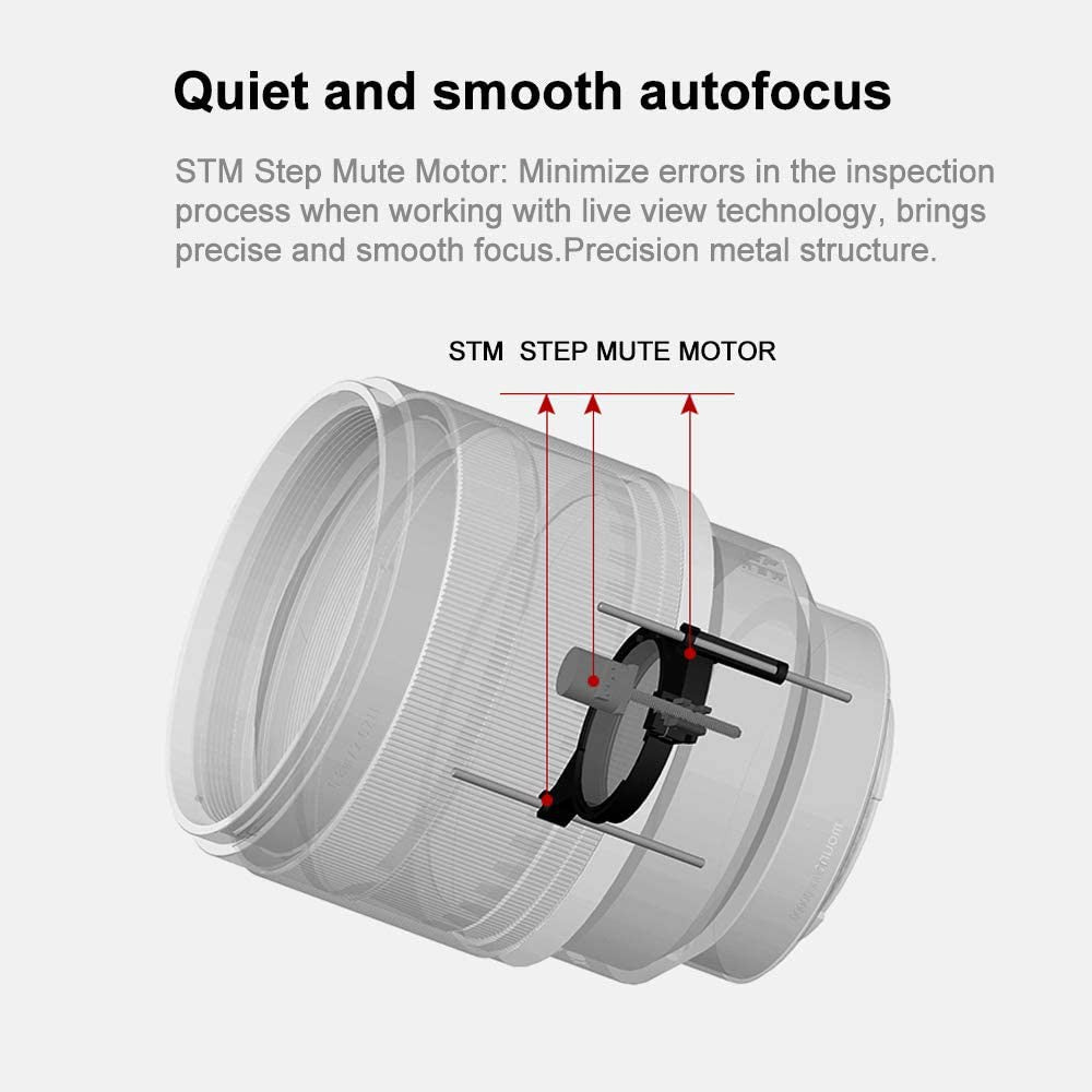 - STM autofocus motor delivers quiet and precise focusing performance along with a minimum focusing distance of 2.6'.