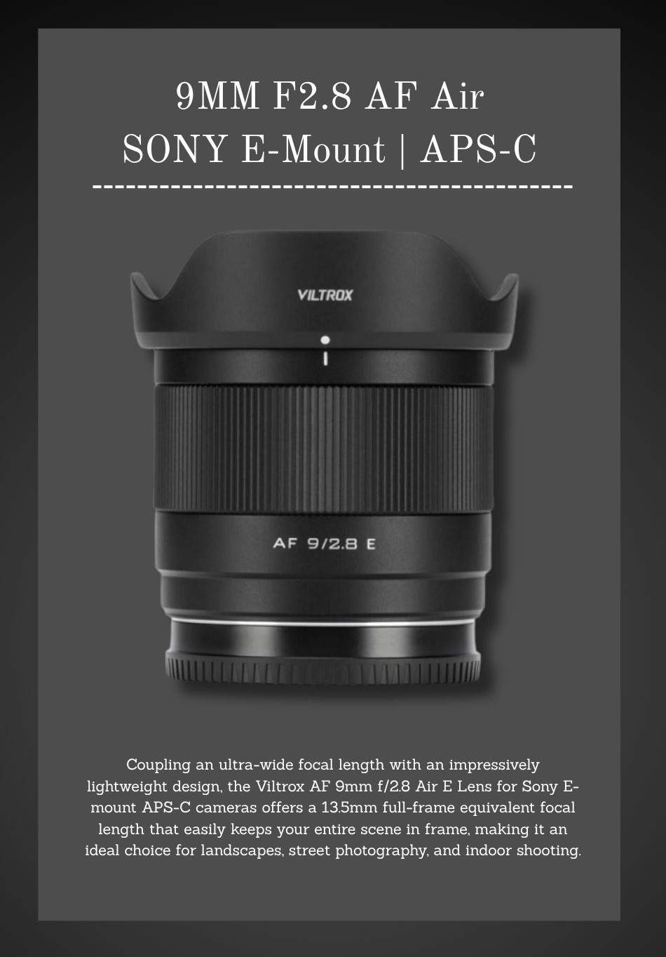 • Bright F2.8 Aperture for Low-Light and Creative Shots.
