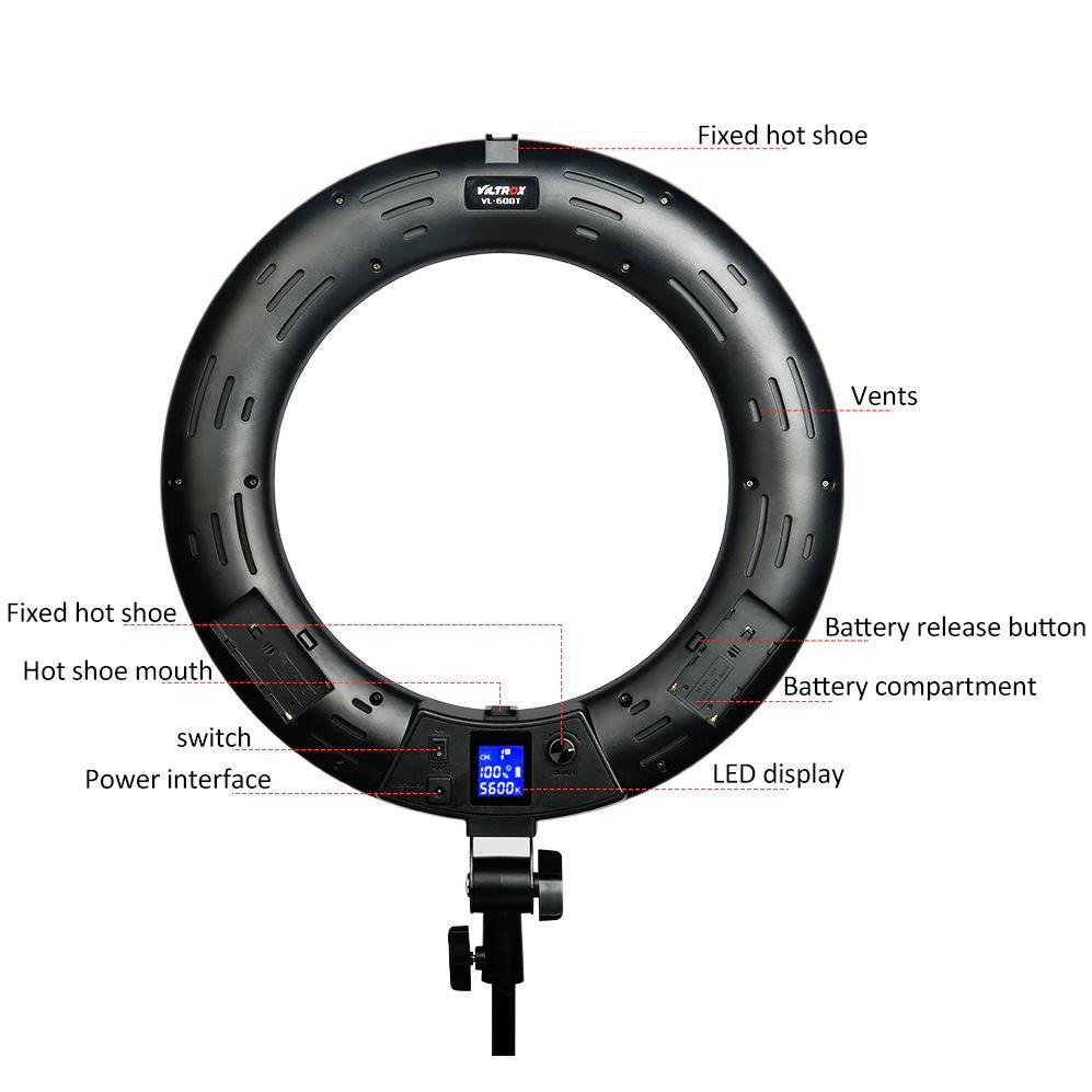 Viltrox VL-600T 45W Video LED Ring Light Photography Lamp Bi-Color Dimmable for Phones Camera and Studio