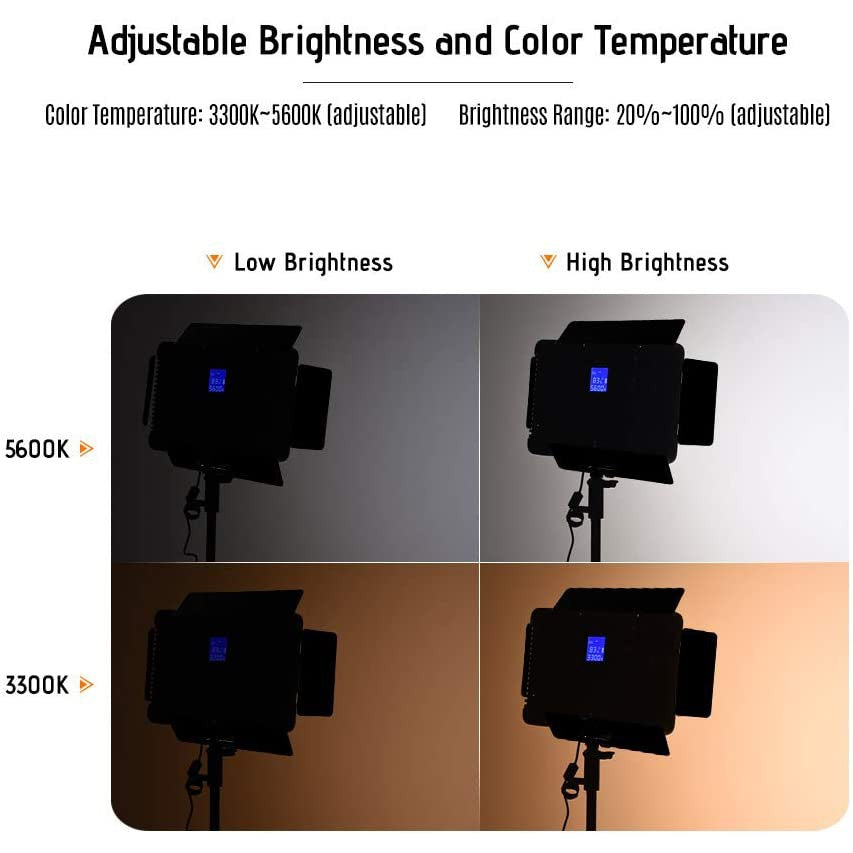 - Adopt 640pcs high quality LED bulbs. Feature high brightness, accurate color temperature and low power consumption. Suitable for portrait, wedding, news interview, macro photography, still life photography and more varieties of shooting scenes.