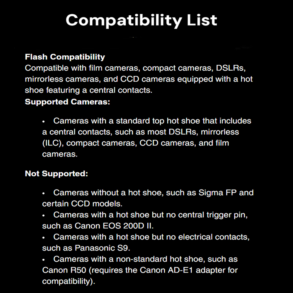 - Flash trigging mode: S1 synchronous flash trigging mode/ S2 pre-flash avoidance flash trigging mode