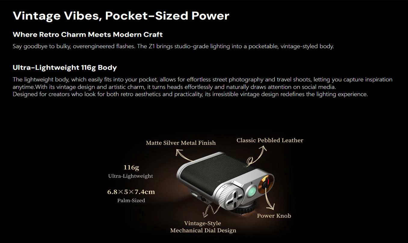 Viltrox Z1 Vintage Camera Flash Retro-Style Compact Speedlight with Manual Mode, GN21 ISO 100, 7-Level Brightness, Lightweight Built-In Rechargeable Battery for DLRS, SLR & Mirrorless Cameras