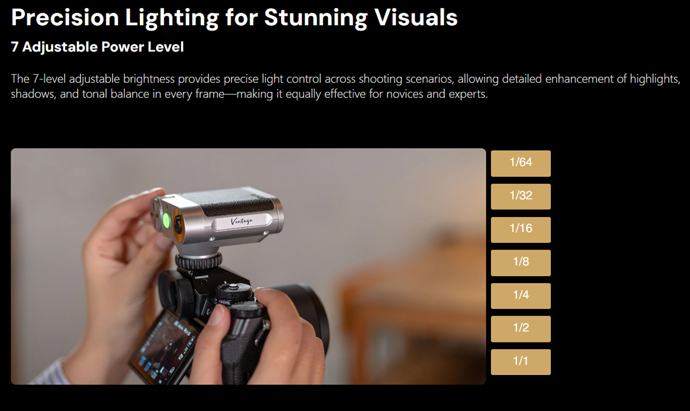 7 power levels, fast 0.2s–3.5s recycle time, and 1/5000s–1/50000s flash duration offer nuanced control, ensuring sharp results and creative flexibility.