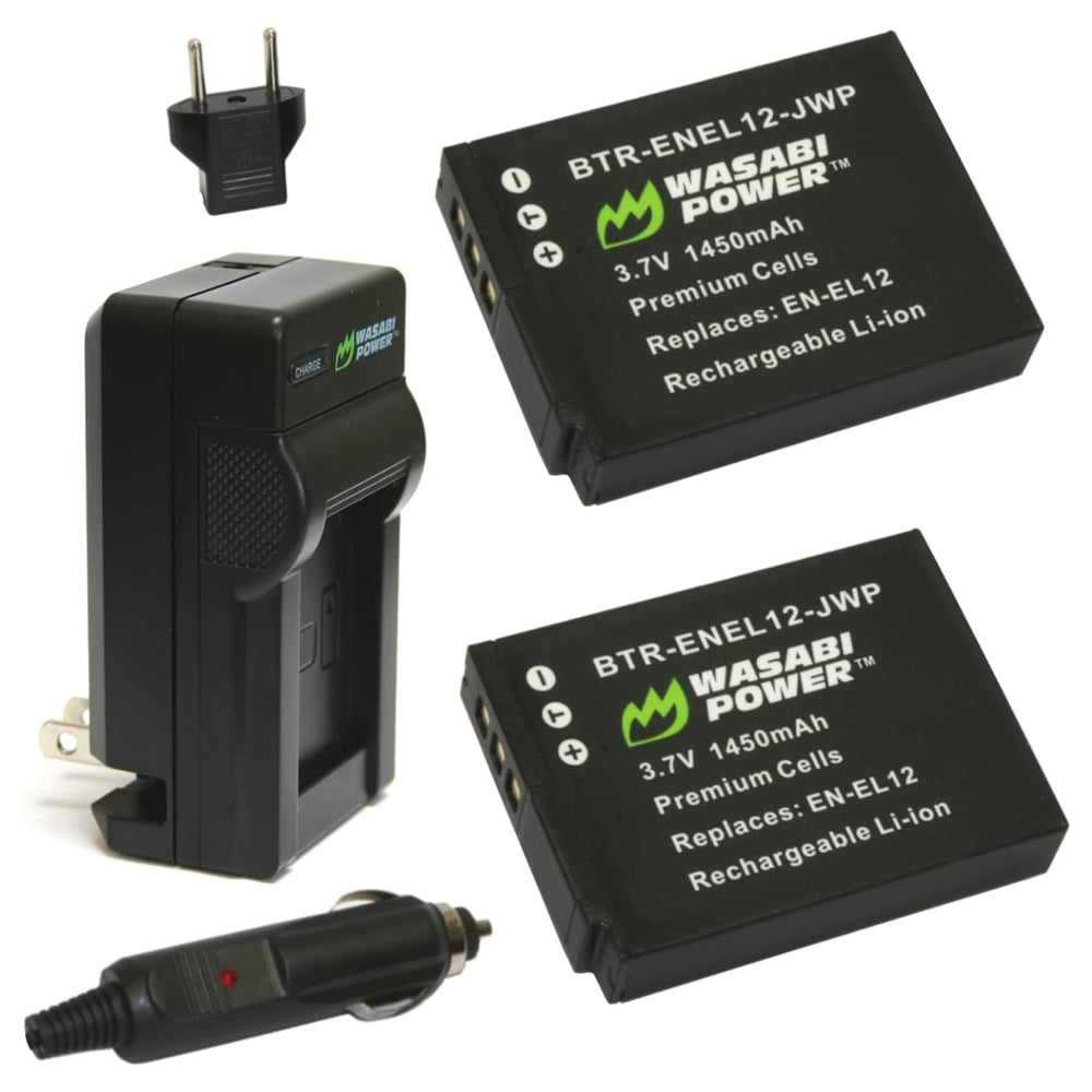 The Wasabi Power ENEL12 Power Kit includes: 2 high capacity batteries with Premium Grade A cells, 1 mini rapid charger (110/240V) with fold-out AC prongs, Car adapter to charge from your vehicle's DC/lighter outlet, European plug adapter for travel All items meet or exceed OEM standards.