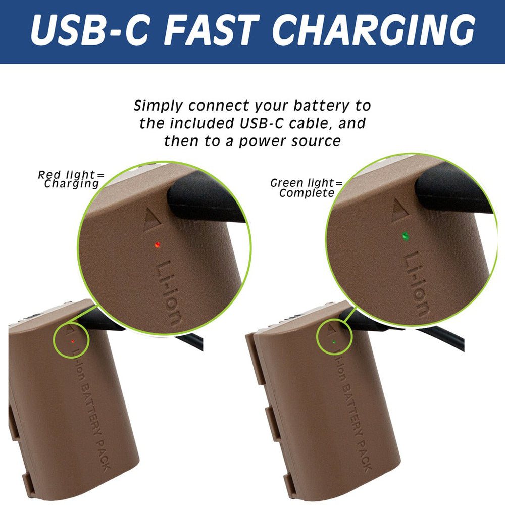 The Wasabi Power LP-E6 battery replaces the Canon LP-E6 battery pack. This Ginger Series battery features a charging port on the battery itself. Simply plug a USB-C to your battery and you may recharge it. This battery features 2250mAh which provides a longer run-time between charges. It is made with premium grade-a cells to provide maximum battery life. Additionally, the Wasabi Power LP-E6 comes fully decoded, so it will display the remaining battery life and usage time and is compatible with the listed Canon cameras and chargers.