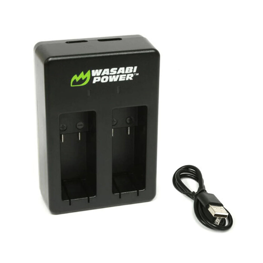 Charge up to two GoPro or Wasabi Power MAX batteries simultaneously with this Wasabi Power Dual-Bay Battery Charger with USB Cable. Each bay has a 1000mA capacity and outputs 4.4V of power. Two USB ports—one micro-USB and one USB-C—connect the charger to a power source. Included with the charger is a micro-USB to USB-A power cable.