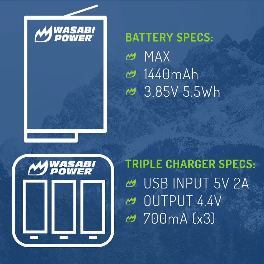 Get Wasabi Power replacements for your GoPro MAX. The compatible Go Pro MAX battery pack features 1440mAh, premium grade-A cells. This battery works great as a spare or replacement. The Wasabi Power battery is completely compatible with all original equipment including the charger and camera. Need GoPro MAX accessories? Buy a Wasabi Power battery or charger compatible with your GoPro camera. They're a great replacement!