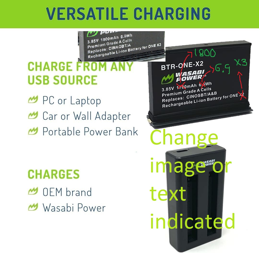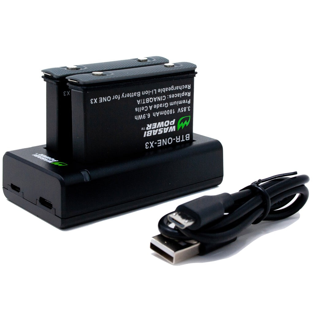 Wasabi Power Rechargeable Battery (2-Pack) 3.85V 1800mAh with USB Dual Charger Kit for Insta360 X3 Camera