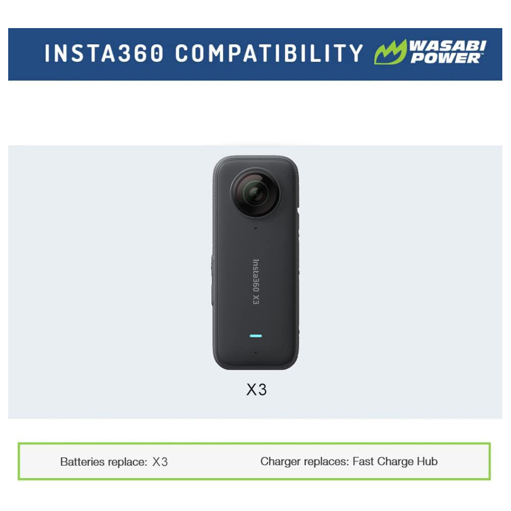 Get Wasabi Power for your Insta360 X3. Featuring 1800mAh, premium grade-A cells, this battery works great as a spare or replacement. The Wasabi Power battery is completely compatible with all original equipment including the charger and camera. The battery is waterproof. Includes a Insta360 X3 battery. Need Insta360 accessories? Buy a X3 battery and X3 charger Wasabi Power product. They're a great replacement!