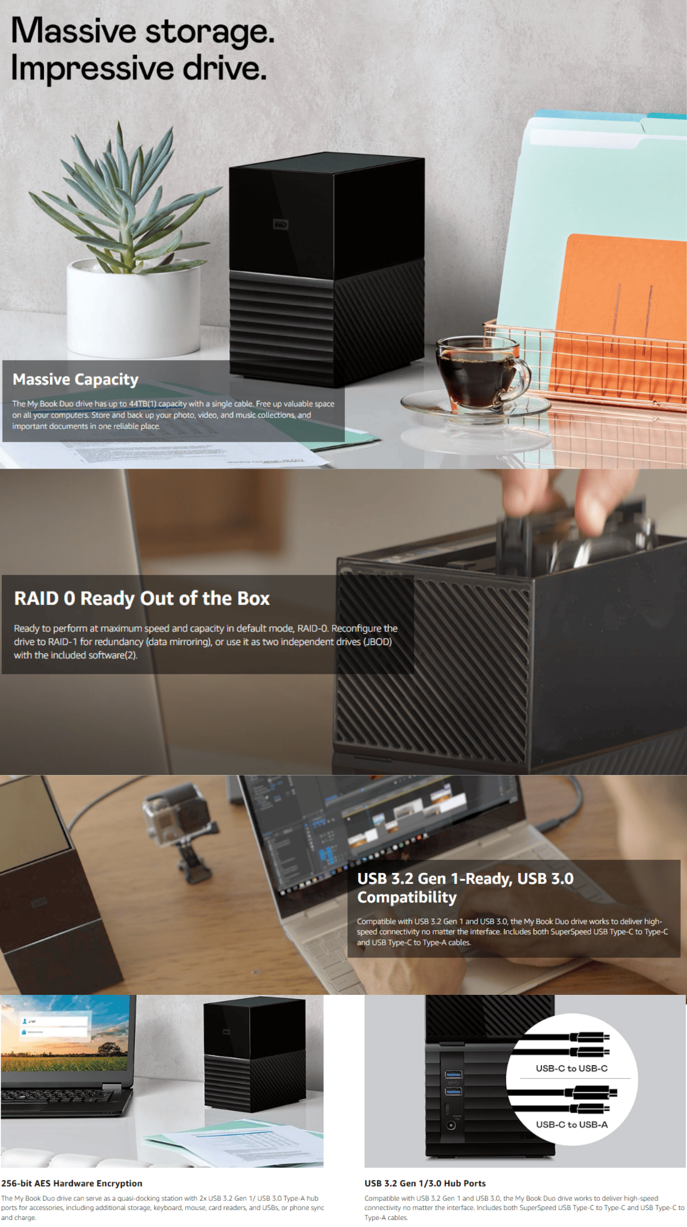 ► Default RAID 0 delivers maximum speed and capacity, with optional RAID 1 mirroring or JBOD using the included software.