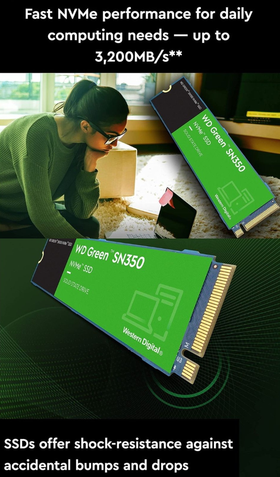 Western Digital is a name you can trust. With a 3-year limited warranty, you can rest assured in your choice of a WD Green™ SN350 NVMe™ SSD.