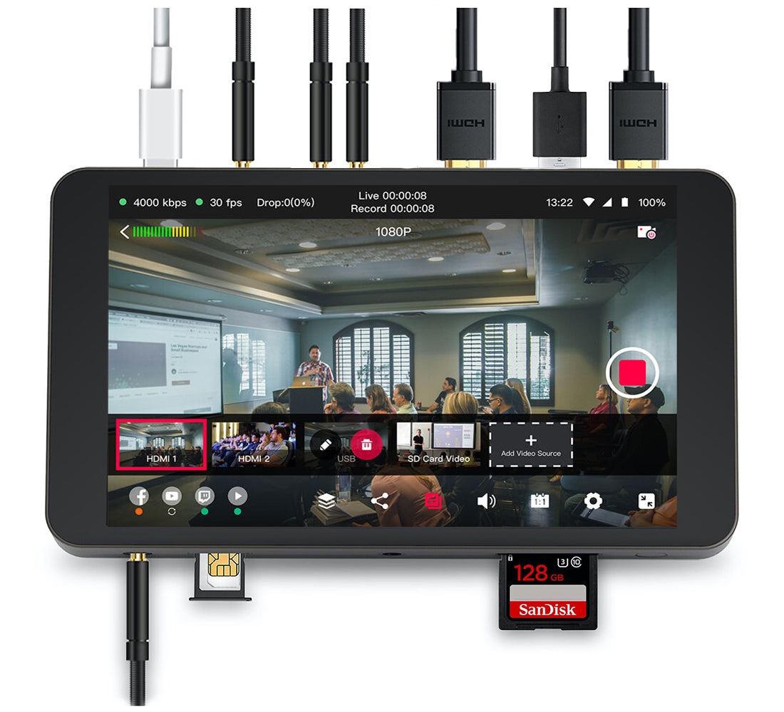 The device works as an encoder that allows for live streaming, and it can record to optional SD cards up to 1TB.