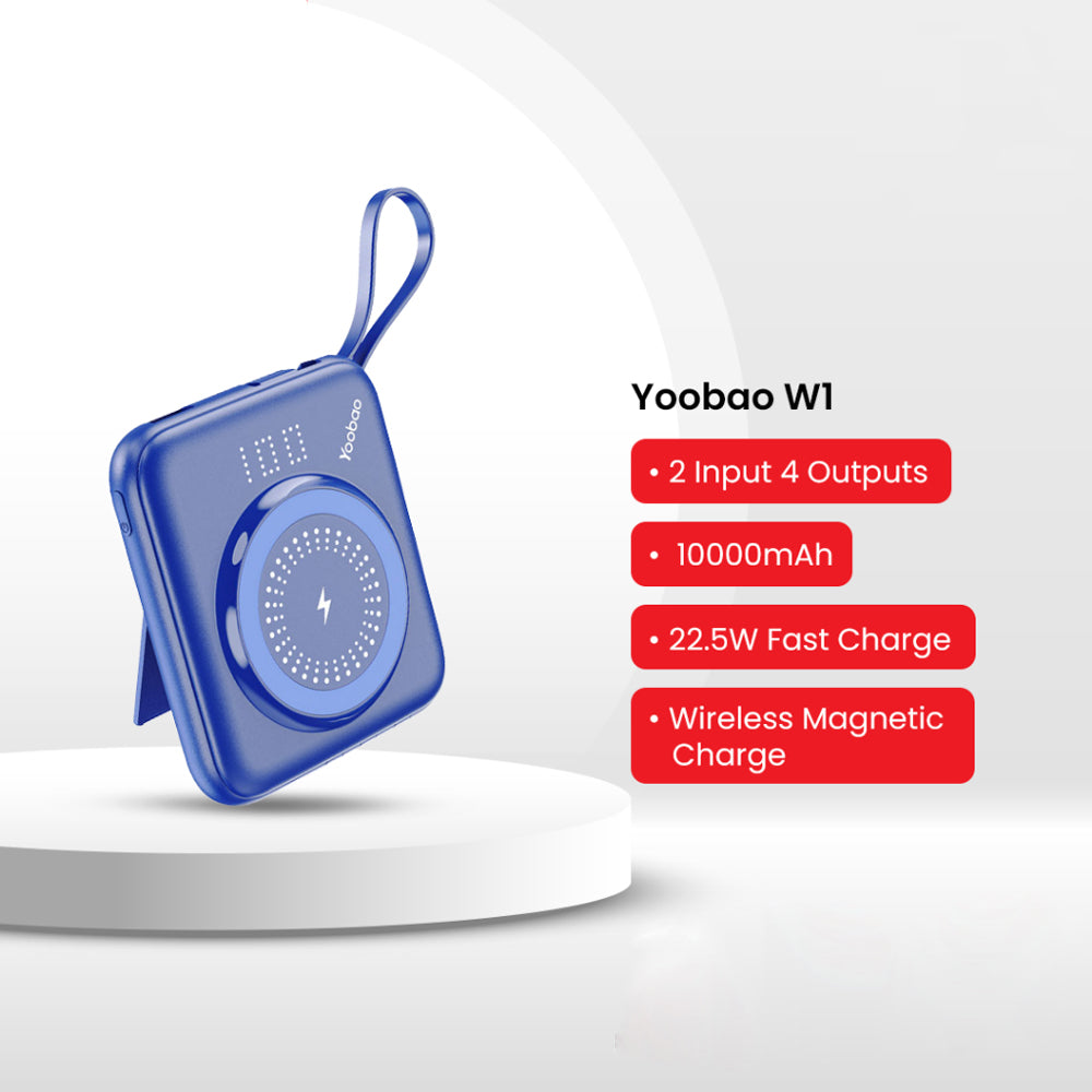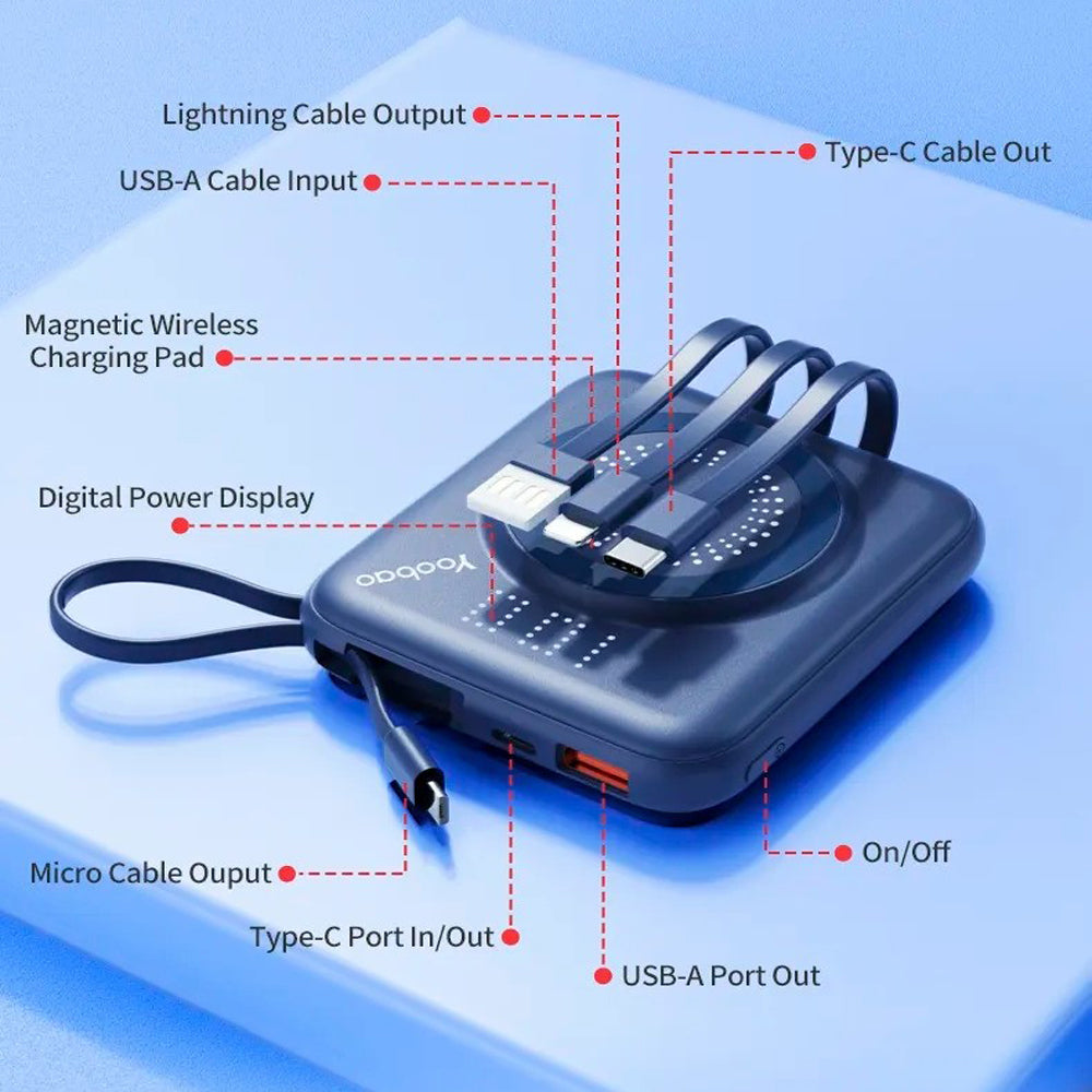 Yoobao W1 10000mAh 22.5W+PD20W Power Bank with USB Type C/ Lightning/ Micro Cable