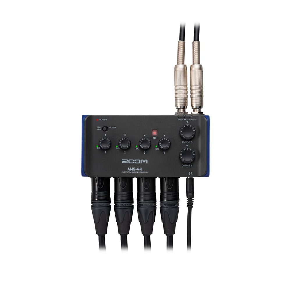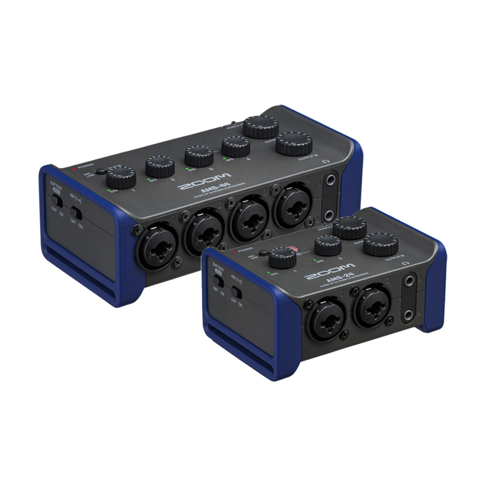 On-the-go musicians looking for a compact and versatile audio interface will appreciate the streamlined and easy-to-use feature set on the Zoom AMS Series, an ultraportable solution with TRS/XLR inputs, two TRS outputs, two headphone jacks, a USB Type-C connector, and modes for both streaming and recording applications.